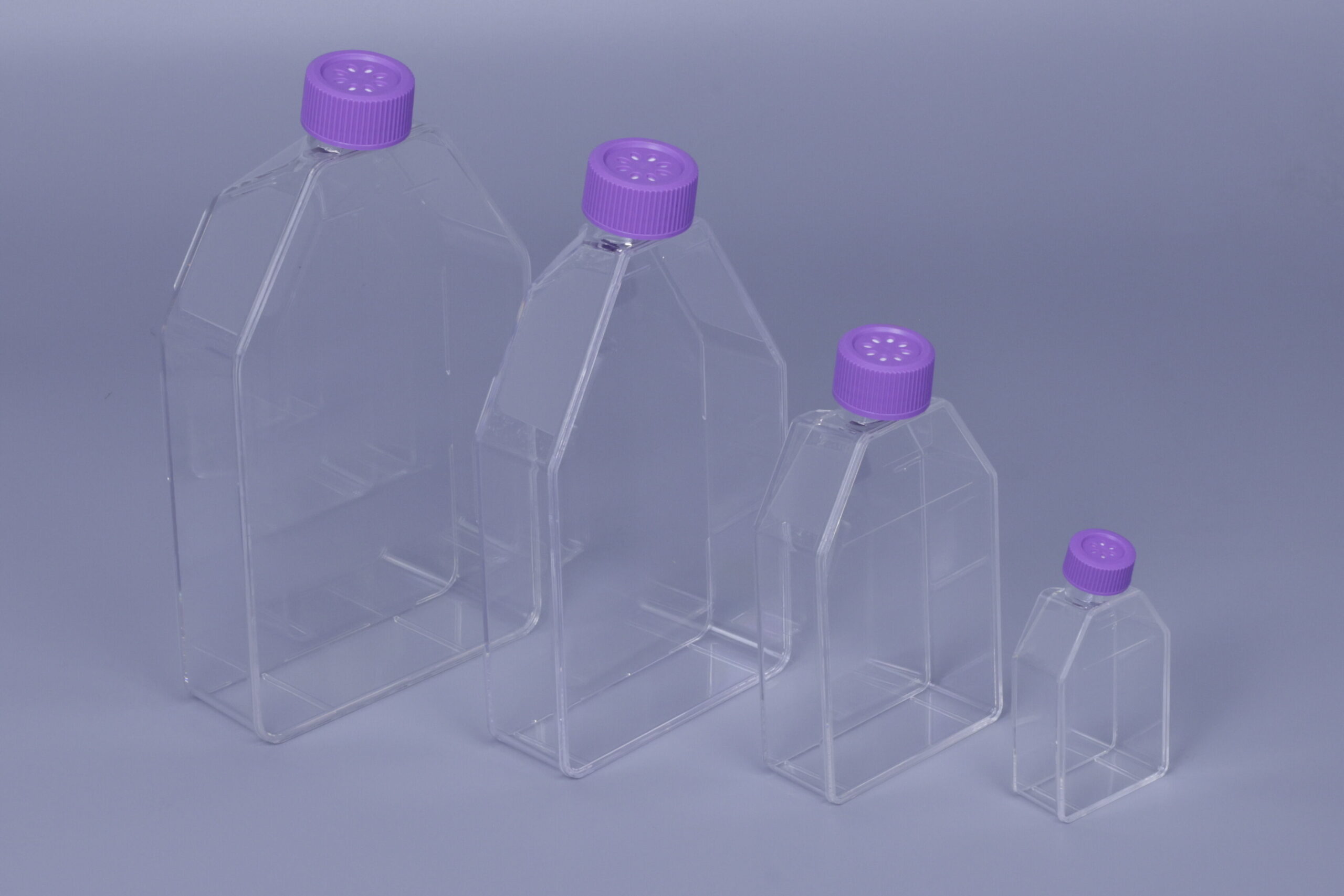 - Flaconi e bottiglie per colture cellulari: prodotti in ambienti controllati, con chiusure ermetiche e pareti otticamente trasparenti per una facile osservazione.